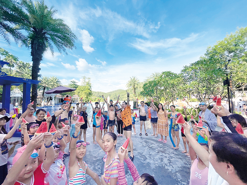 为丰富到店家庭客的游玩项目,除了原有的泳池、萌宝乐园、欢乐天地、童趣捕鱼外,酒店在大堂新增了DIY沙画活动,推出“为荷而来”摄影活动等等,这些项目很好地在入住高峰时引流,减少客人等候办理入住时间。另外,酒店还新增了21处打卡点网红点、梦幻之旅&萤火虫灯光秀拍照圣地以及芳华园户外露天影院等,以此提升客人的入住体验。