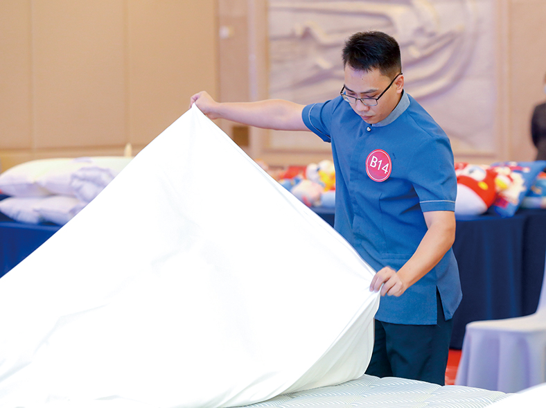 本次大赛于8月31日拉开帷幕,有来自全省21个地市代表队的77名精英选手围绕前厅服务、客房服务、中餐服务、西餐服务等四个项目展开激烈角逐。比赛中既有理论考试,又有实操考核,是对星级饭店服务人员业务知识、服务质量、英语服务能力、沟通协调能力、突发事件应对能力等多维度的考察评比。